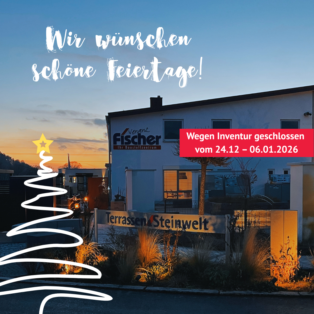 Vom 24.12. bis zum 06.01. bleiben unsere Baumarkt-Filialen in Friesen bei Kronach und Ebersdorf b. Coburg wegen Inventur geschlossen. Ab dem 07.01.2025 sind wir wieder für Ihre Bauvorhaben da und freuen uns auf Ihren Besuch! Genießen Sie die Weihnachtszeit und starten Sie schwungvoll ins neue Jahr.